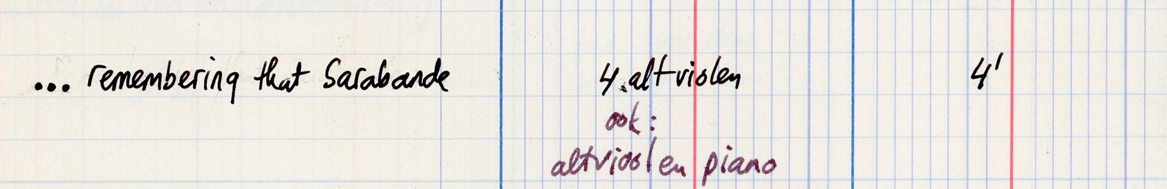 - … Remembering that sarabande : voor 4 altviolen ook: altviool en piano