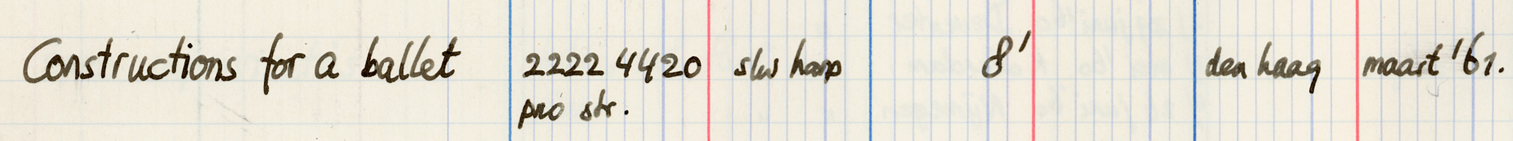 | Constructions for a Ballet : voor 2222 4420 slw harp pro str. | expression |