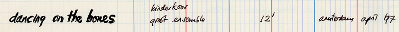 | Dancing on the Bones : for large ensemble + childrens voices : 1997 / Louis Andriessen | manifestation |
