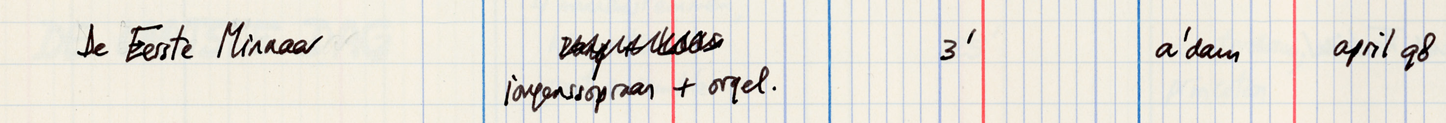 | De eerste minnaar : voor jongenssopraan + orgel | manifestation |