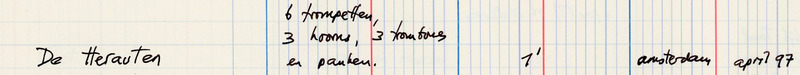 | De herauten : voor 6 trompetten, 3 hoorns, 3 trombones en pauken | manifestation |