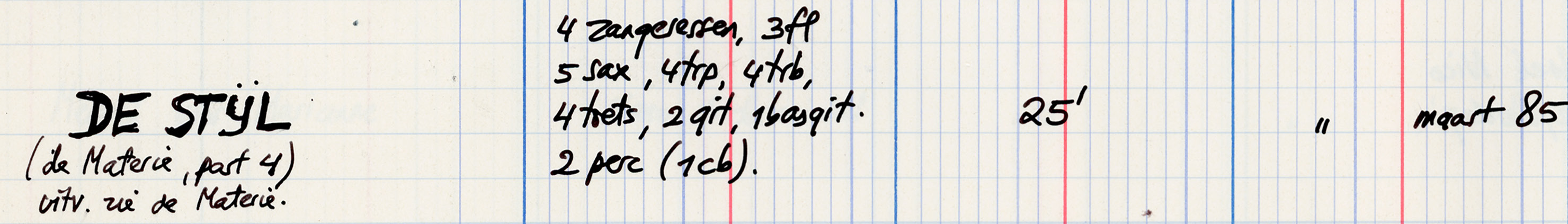 - De Stijl : (De materie - part III) : 4 women voices and large ensemble : 1985 / Louis Andriessen