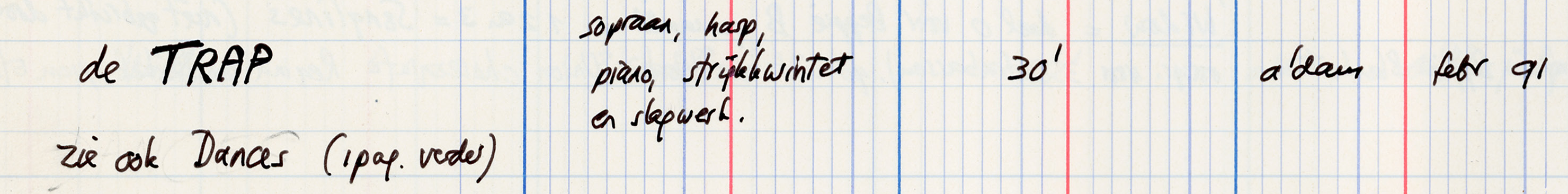 - De trap : voor sopraan, harp, piano, strijkkwintet en slagwerk