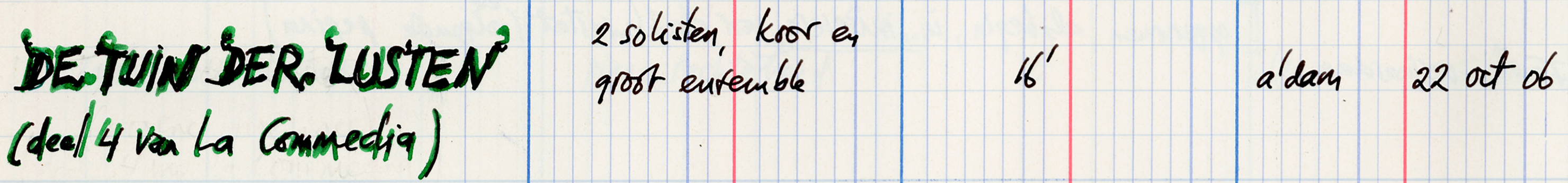 - De tuin der lusten : voor 2 solisten, koor en groot ensemble