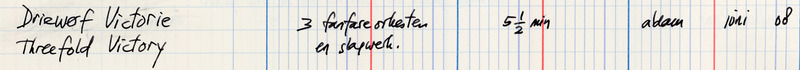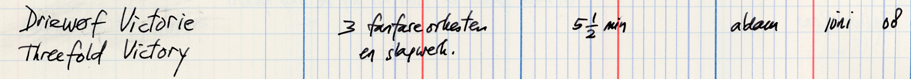 - Driewerf victorie [Threefold victory] : voor 3 fanfareorkesten en slagwerk