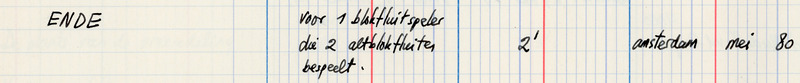 | Ende : for one recorder player playing two alto recorders : 1981 / Louis Andriessen | manifestation |