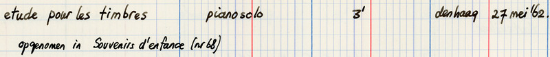 | Etude voor piano, "Étude pour les timbres | manifestation |