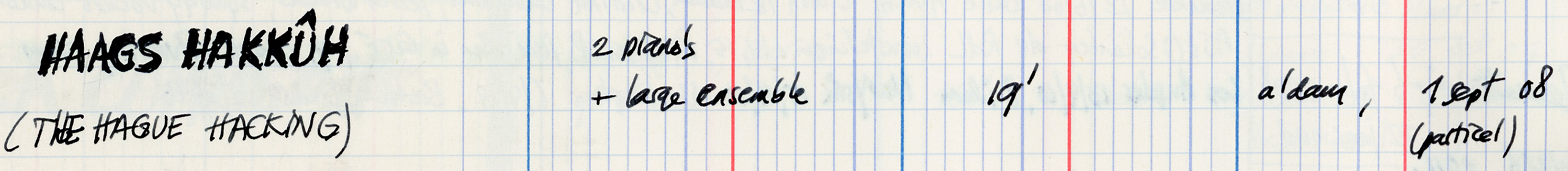 | Haags hakkûh (The Hague hacking) : for 2 pianos / Louis Andriessen | manifestation |