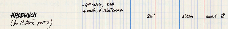 - Hadewijch : (De materie - part II) : soprano, 8 voices and large ensemble : 1988 / Louis Andriessen