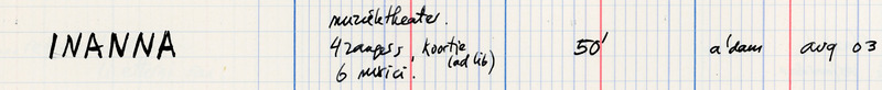 | Inanna : voor 4 zangers, koortje (ad lib), 6 musici | manifestation |
