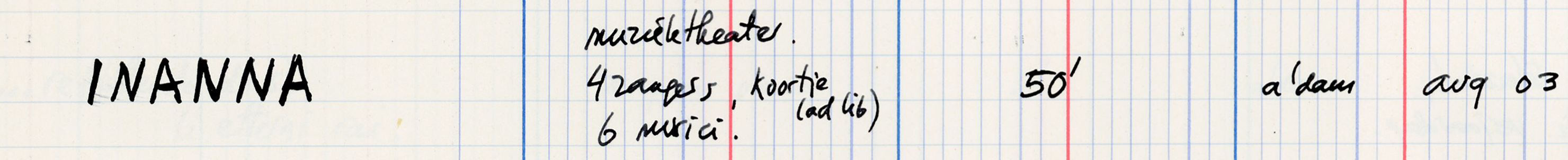 - Inanna : voor 4 zangers, koortje (ad lib), 6 musici