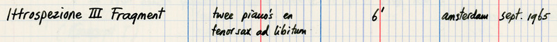 - Ittrospezione III (fragment) : voor twee piano's en tenorsax ad libitum