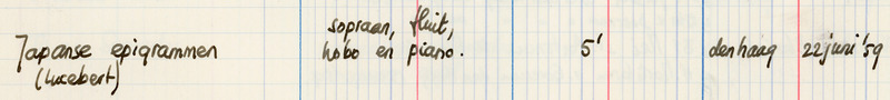 - Japanse epigrammen : voor sopraan, fluit, hobo en piano