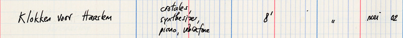 - Klokken voor Haarlem : voor crotales, synthesizer, piano, vibrafoon