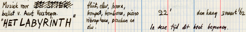 - labyrint, Het : voor fluit, kl, hoorn, trompet, trombone, piano, vibrafoon, pauken en slw