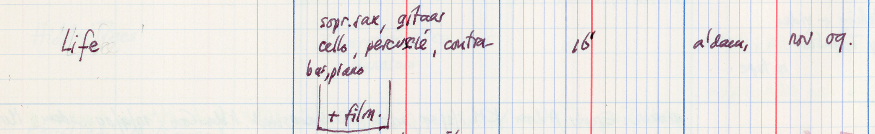 - Life : voor sopr. Sax, gitaar, cello, contrabas, piano