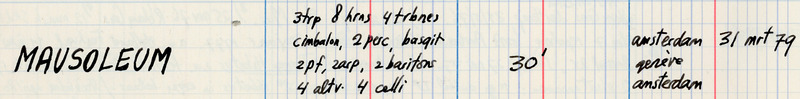 - Mausoleum : 1979 / Louis Andriessen
