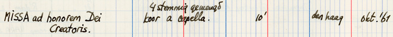 | Missa ad honorem Dei Creatoris : voor 4 stemmig gemengd koor a capella | manifestation |