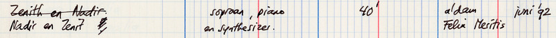 - Nadir en Zenith : voor sopraan, piano en synthesizer