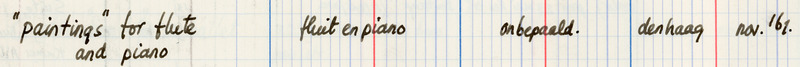 | Paintings : for one flutist (or recorder player) and one pianist = für einen Flötisten (Blockflötisten) und einen Pianisten / Louis Andriessen ; [herausgegeben und kommentiert von Michael Vetter] | manifestation |