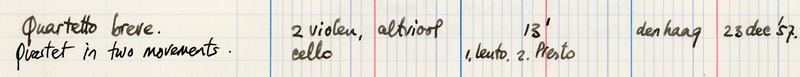 - Kwartet voor violen [2], altviool en cello, "Quartet in two movements", 1957 deel I