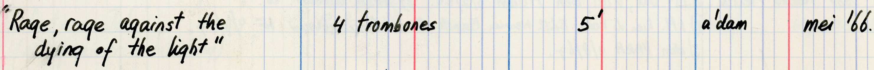 | Rage, Rage against the Dying of the Light : voor 4 trombones | manifestation |