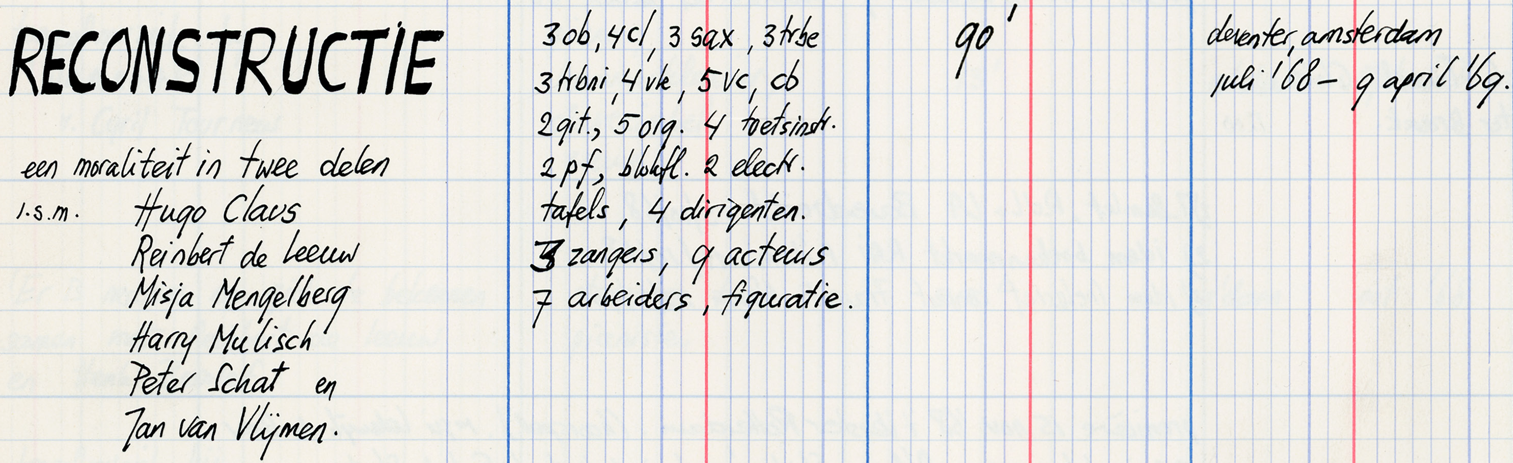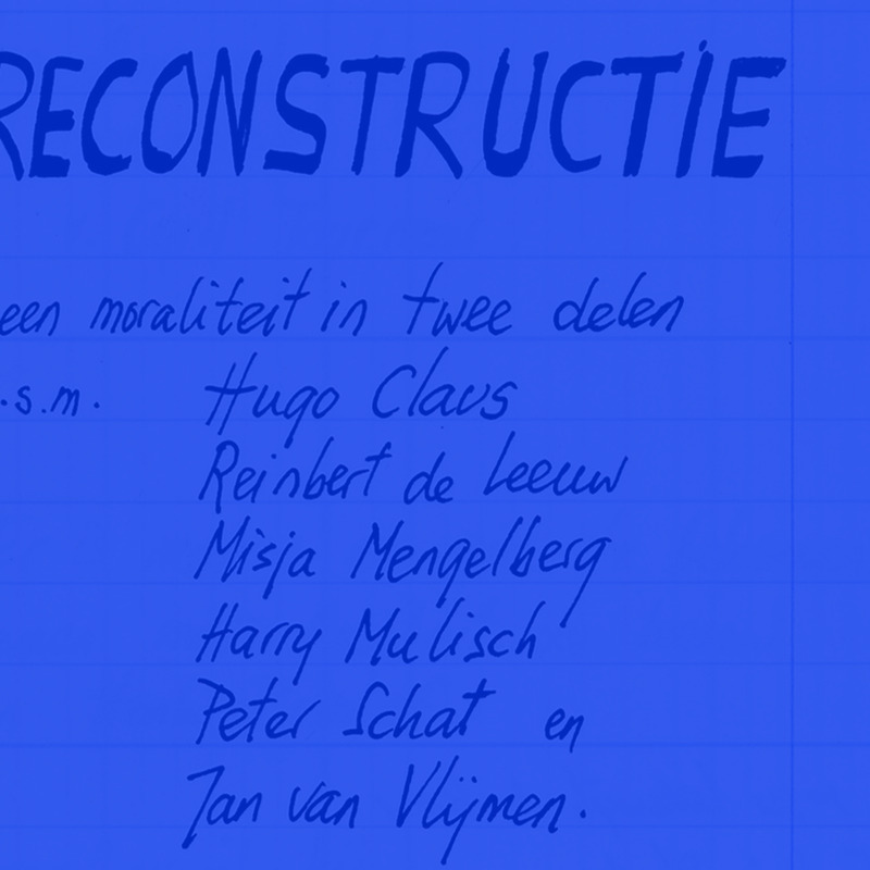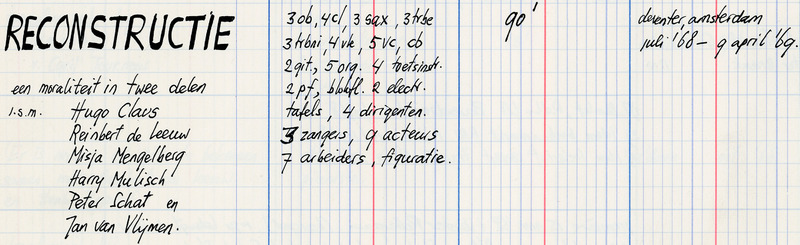 - Reconstructie : een moraliteit / door Louis Andriessen, Hugo Claus, Reinbert de Leeuw, Misja Mengelberg, Harry Mulisch, Peter Schat en Jan van Vlijmen