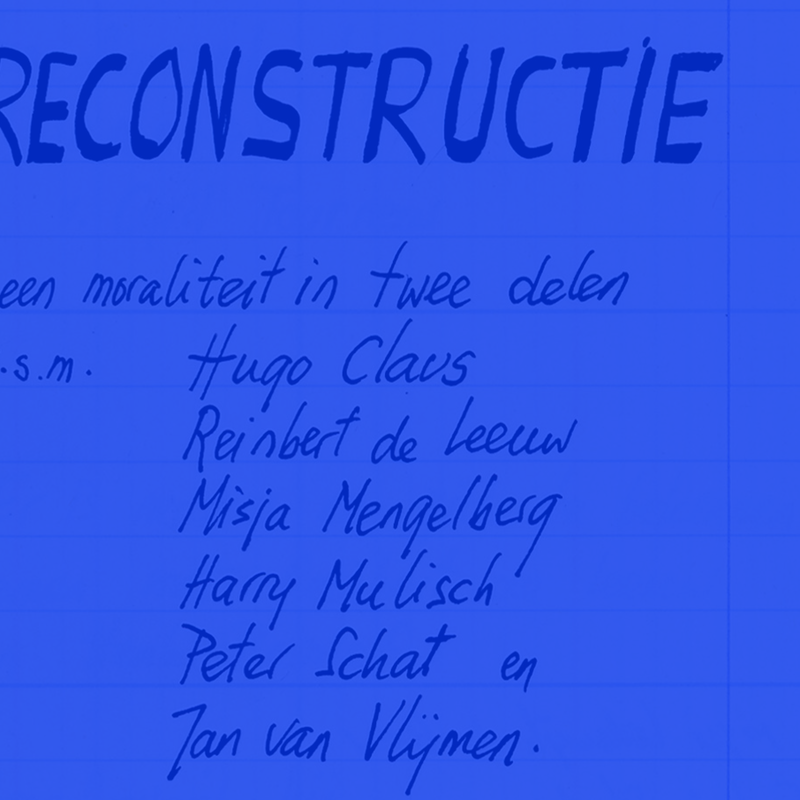 | Reconstructie : een moraliteit / door Louis Andriessen, Hugo Claus, Reinbert de Leeuw, Misja Mengelberg, Harry Mulisch, Peter Schat en Jan van Vlijmen | expression |