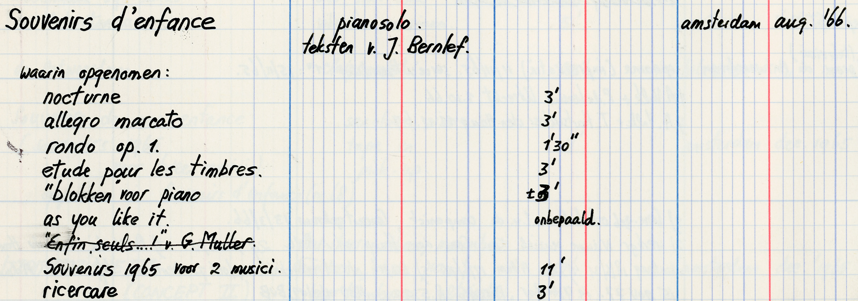 - Souvenirs d'enfance / gecomponeerd, geschreven, verzameld & ingeleid door Louis Andriessen ; met medewerking van J. Bernlef